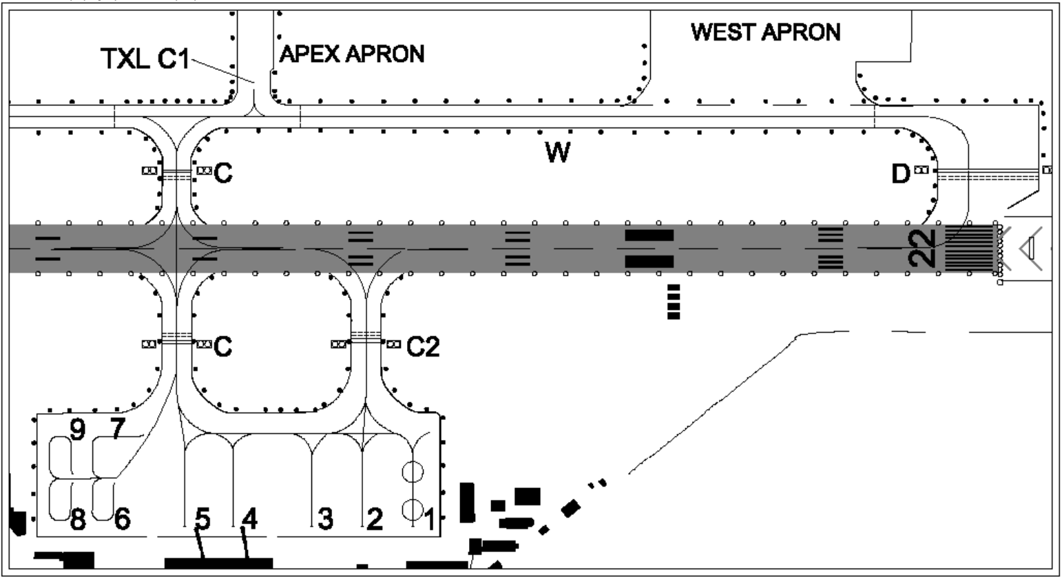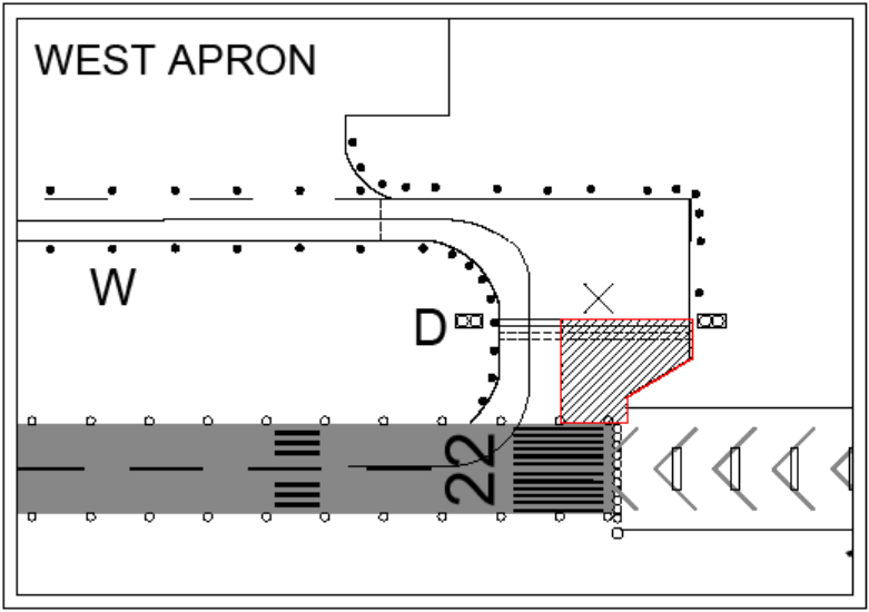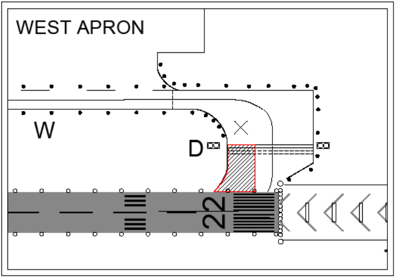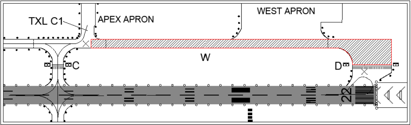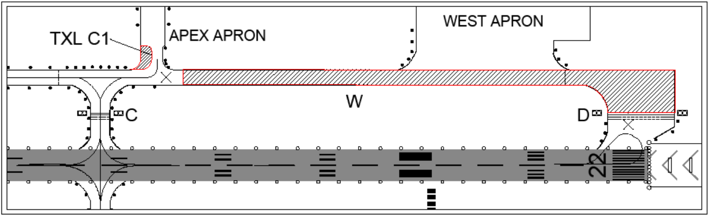 部分C滑行道(介於W 滑行道與04/22 跑道之間)。