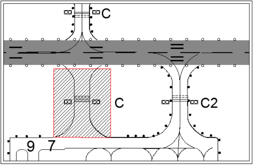 注意事項:C1滑行路徑中心線標線重新調整(參閱示意圖)。