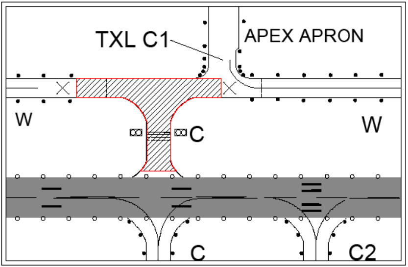 部分W 滑行道(介於C1 滑行路徑(不含)與D 滑行道(含)之間)與