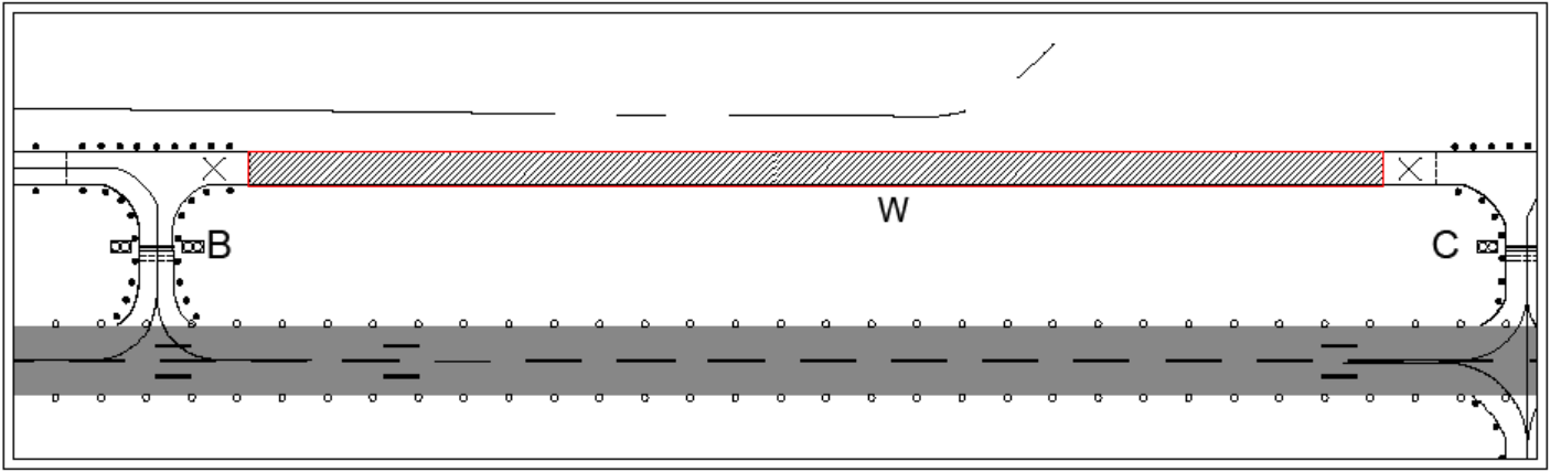部分W 滑行道(介於B 滑行道(不含)與C 滑行道(不含)之間)。 |