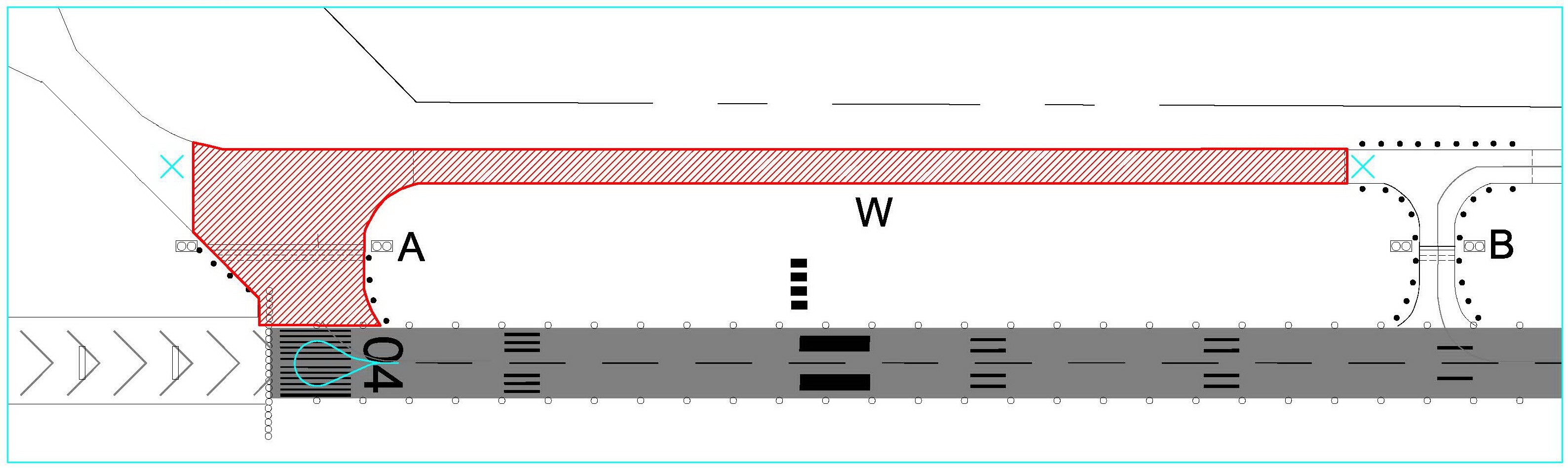 部分W滑行道 (介於A滑行道(含)與B滑行道(不含)之間)。